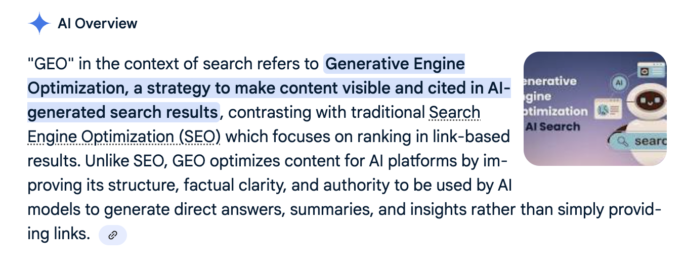 Now, my goal has shifted: I need my content to be the links included in the AI Overview.